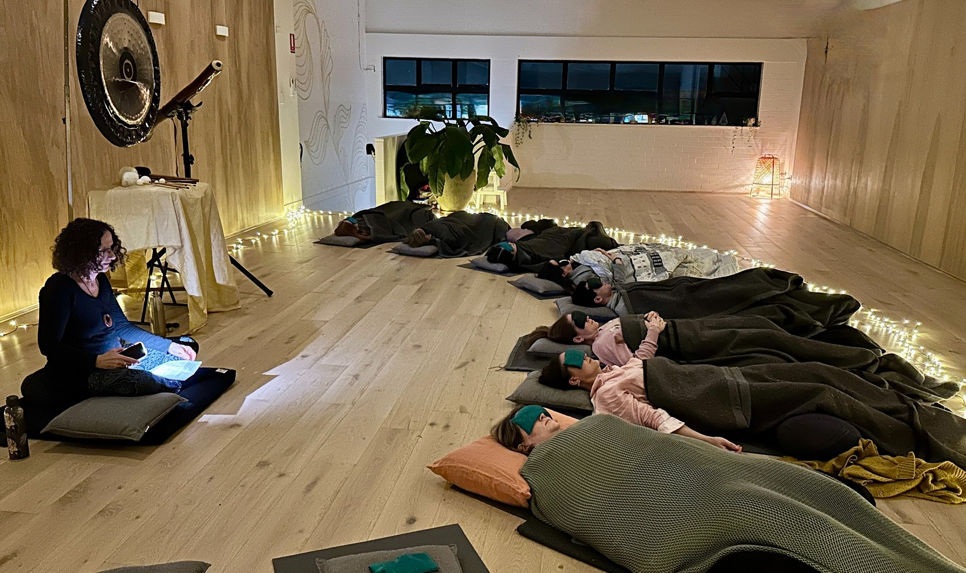 This helps to relax the body and to transition from the hectic outside world into the calm space of a sound bath.